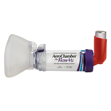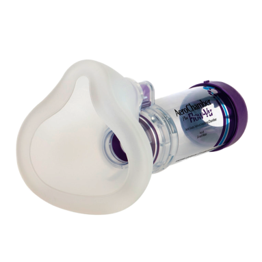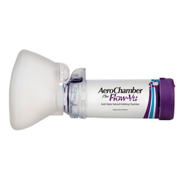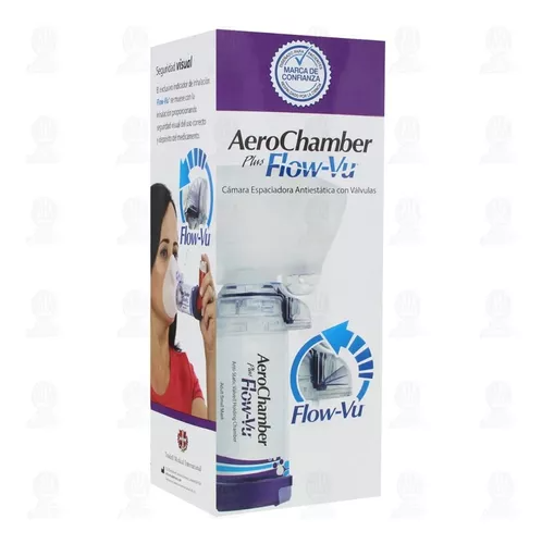 Aerocámara AeroChamber Mascarilla Chica El exclusivo indicador de inhalación Flow-Vu se mueve con la inhalación proporcionando seguridad visual del uso correcto y depósito del medicamento. •Sistema bivalvular. •Deflector. •Adaptable a cualquier inhalador de dosis medida. •Indicador Flow-Vu. •Alarma de inhalación excesiva •.Material (camara) Antiestático. •Volumen de la cámara 149 ml. Uso a partir de 5 años