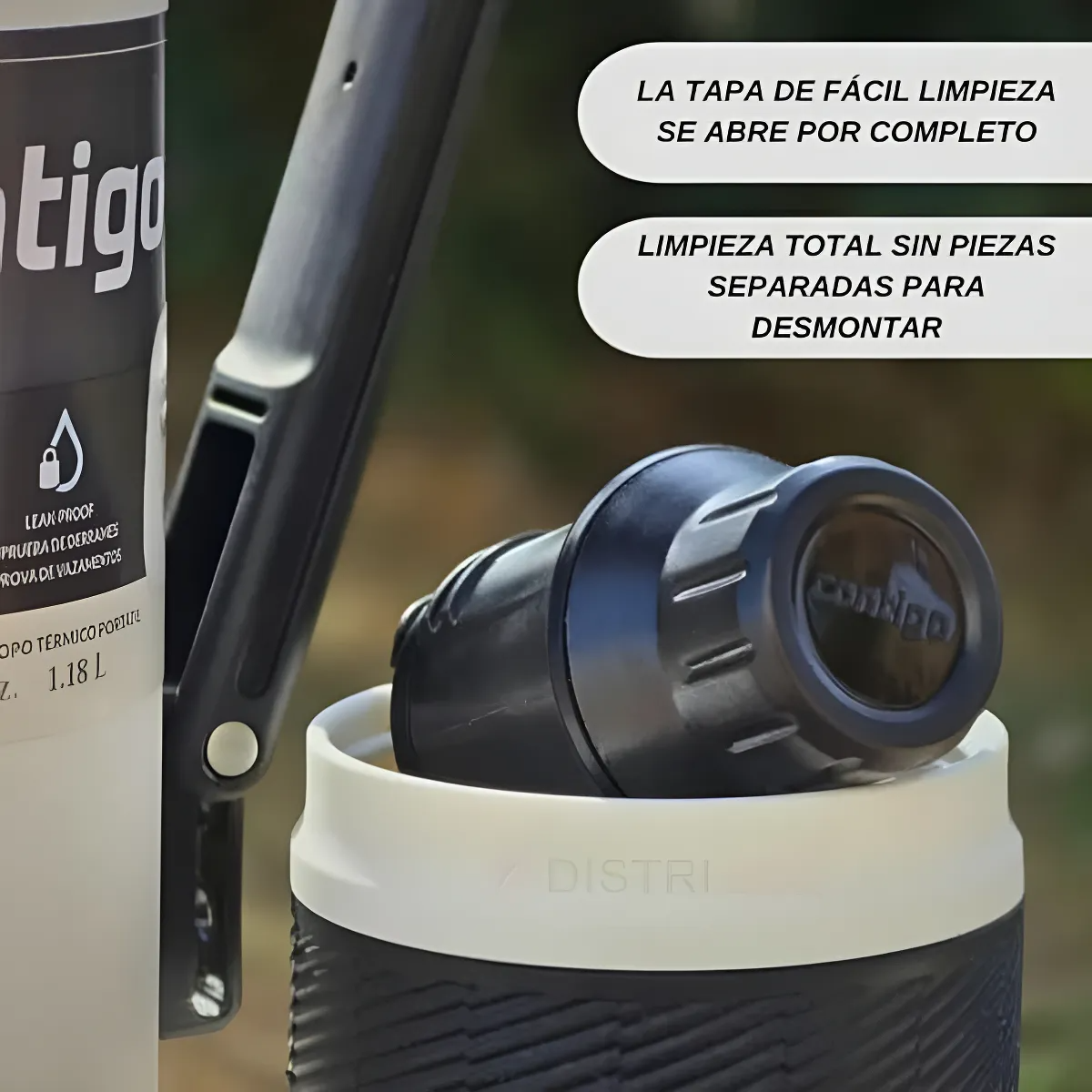 Su capacidad de 1.182 litros es suficiente para acompañarte en tus aventuras diarias, sean largas caminatas, viajes al trabajo o actividades al aire libre. La pared doble de vacío permite conservar tus bebidas frías y calientes, facilitando el disfrute de cada sorbo, sin riesgos de goteos gracias a su sistema antigoteo.