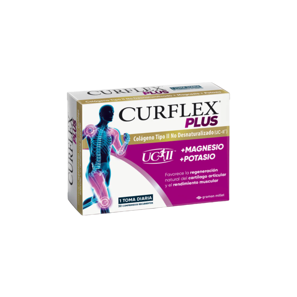 CURFLEX PLUS + MAGNESIO + POTASIO UCII es el único tratamiento progresivo que con un solo comprimido diario ayuda a mantener en buen estado los cartílagos y articulaciones de todo el cuerpo.