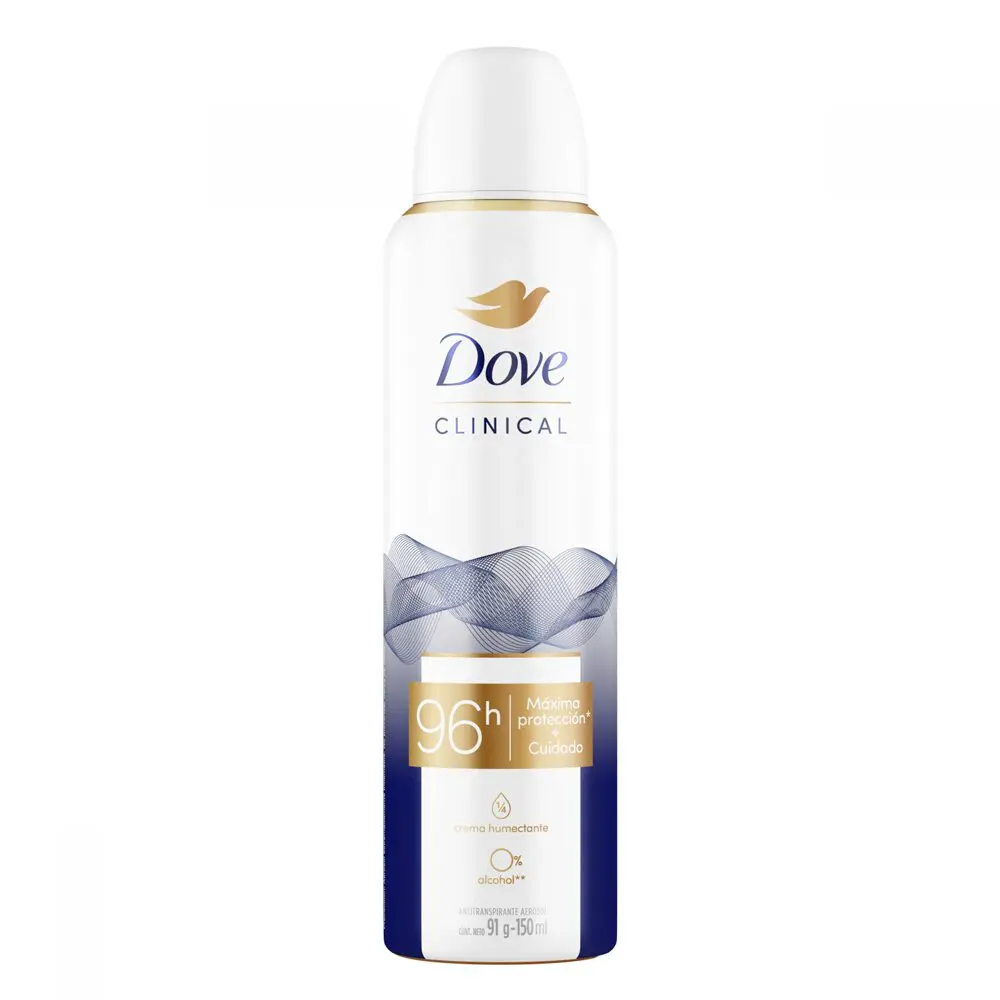 El nuevo Antitranspirante en aerosol Dove Clinical te ofrece una máxima protección con todo el cuidado de Dove. La exclusiva combinación de ingredientes del antitranspirante en aerosol Dove Clinical forma una barrera contra el sudor mucho más potente que un antitranspirante común, y por eso es más efectiva. Su exclusiva tecnología forma un micro escudo de protección que dura hasta por 96 horas.