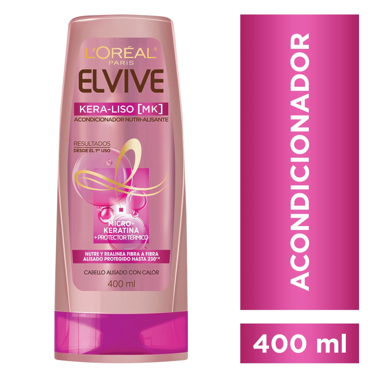 Gracias a su fórmula enriquecida con Micro-Queratina inspirada en la queratina del cabello y su protector térmico, Elvive Keraliso actúa en 3 niveles.