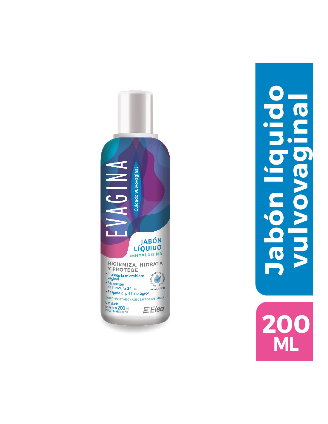 Jabón líquido vaginal con una innovadora fórmula con A.H. que higieniza, hidrata y protege, respetando el pH.