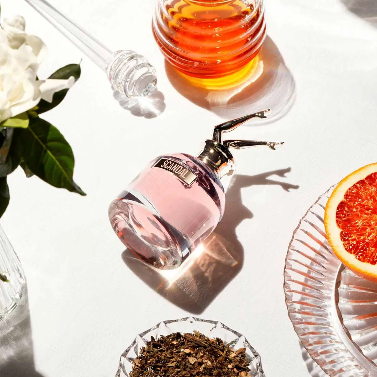 Scandal representa un nuevo estilo de fragancia femenina, donde su aura elegante es manchada por el espíritu de Pigalle amado por Jean Paul Gaultier. Hasta la señora ministra se siente tentada por este aroma a escandalo. Es mas que un golpe de aire fresco, es un golpe de libertad. De noche, todos (en Jean Paul Gaultier) tienen permitido serlos dueños de las fiestas, crear escenas y hacer escándalos. Incluso la señora ministra! Ya no sabemos si es una señora de la alta sociedad (gran fantasía) o la reina de la noche (Gran fantasía), son como la misma persona.