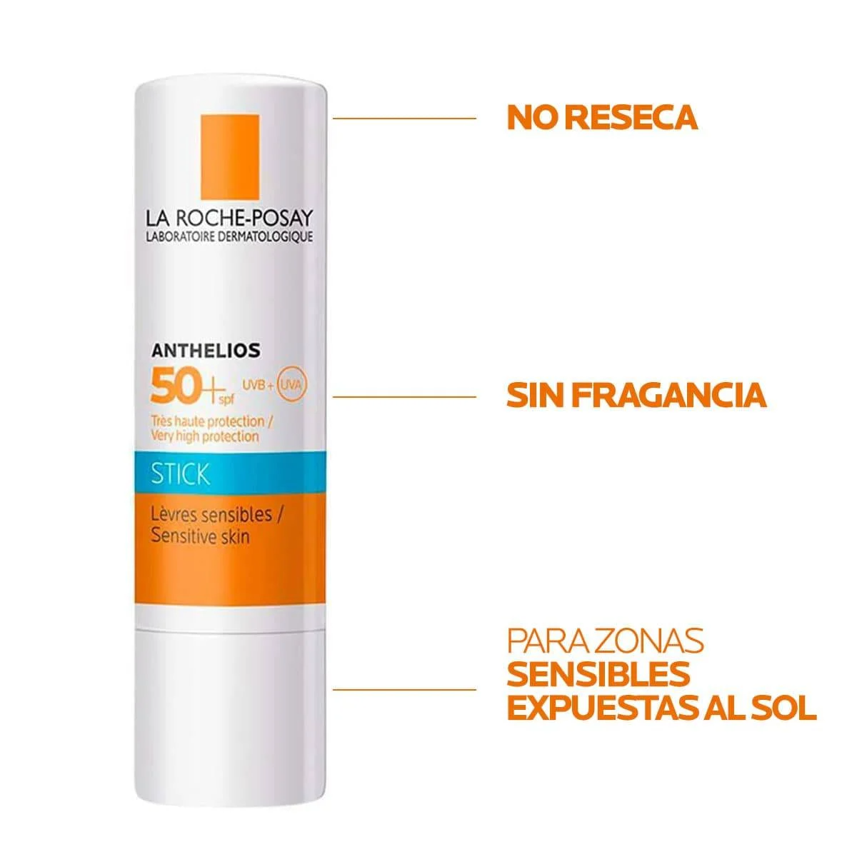 PROTECTOR DE LABIOS – ANTHELIOS XL STICK FPS 50+ proporciona mayor protección de amplio espectro (UVA, UVB). Evita que se resequen los labios. Para labios delicados y sensibles o con exceso de exposición solar. Textura no grasa. Aplica el protector solar facial justo antes de la exposición. Volver a aplicarla de manera frecuente y generosa para mantener la protección, especialmente después de transpirar o secarse con una toalla. Uso externo. El exceso de exposición al sol es peligroso aunque se use una pantalla solar porque no proporciona protección total. Mantener a bebés y niños pequeños alejados de la luz solar directa.