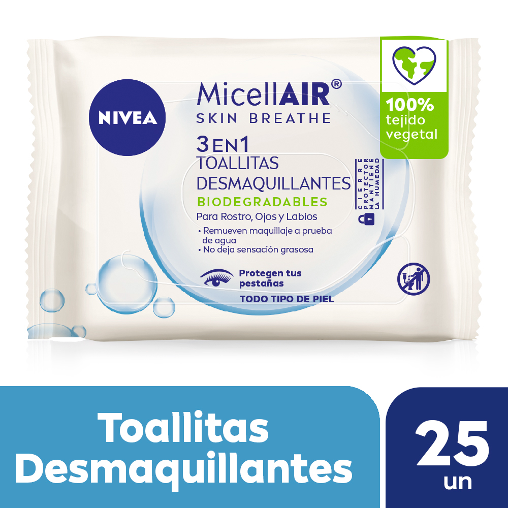 NIVEA MicellAir todo tipo de piel Toallitas desmaquillantes 3 en 1 x 25u