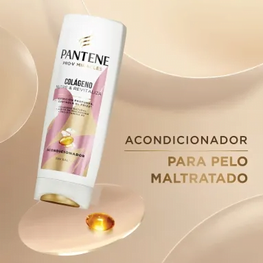 Logra, en el pelo que es estilizado a diario, una reparación y nutrición profunda duradera desde la raíz del pelo hasta las puntas gracias a su fórmula con colágeno. La colección también ayuda a regenerar, nutrir, fortalecer, controlar el frizz del pelo y las puntas abiertas y darle elasticidad al pelo dañado debido a los estilizados constantes. El Acondicionador sin sal’ Pantene Colágeno Nutre y Revitaliza contiene ingredientes acondicionadores activos que lubrican el pelo para una sensación de suavidad inigualable, potenciando los beneficios de rescate y nutrición del shampoo. ¡Decile adiós al frizz y las puntas abiertas! Nutrición Profunda con Pantene Colágeno.