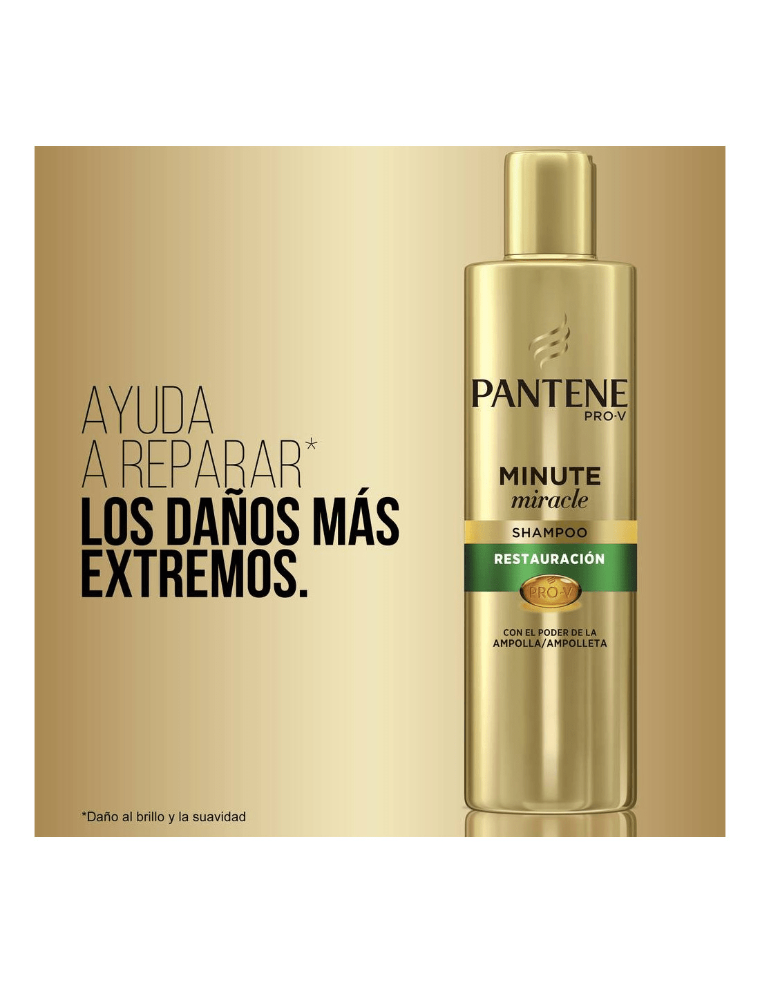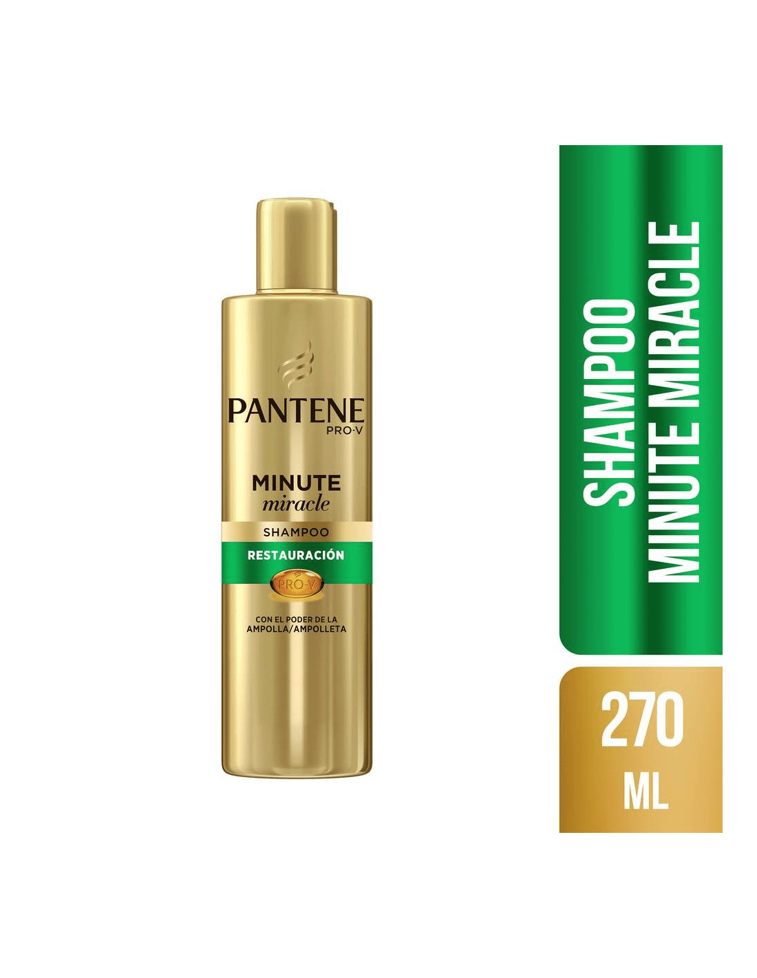Shampoo Restauración Minute Miracle reforzado con el poder de la ampolla, ayuda a reparar* los daños más extremos para un cabello fuerte que luce saludable. El Shampoo Minute Miracle de Pantene es el único shampoo que refuerza la fórmula con pro-vitaminas con el poder de la ampolla, en una fórmula de oro patentada que brinda un sistema que va más allá de la limpieza y que deja el pelo nutrido, suave, 100% más fuerte** y sin frizz desde la raíz
