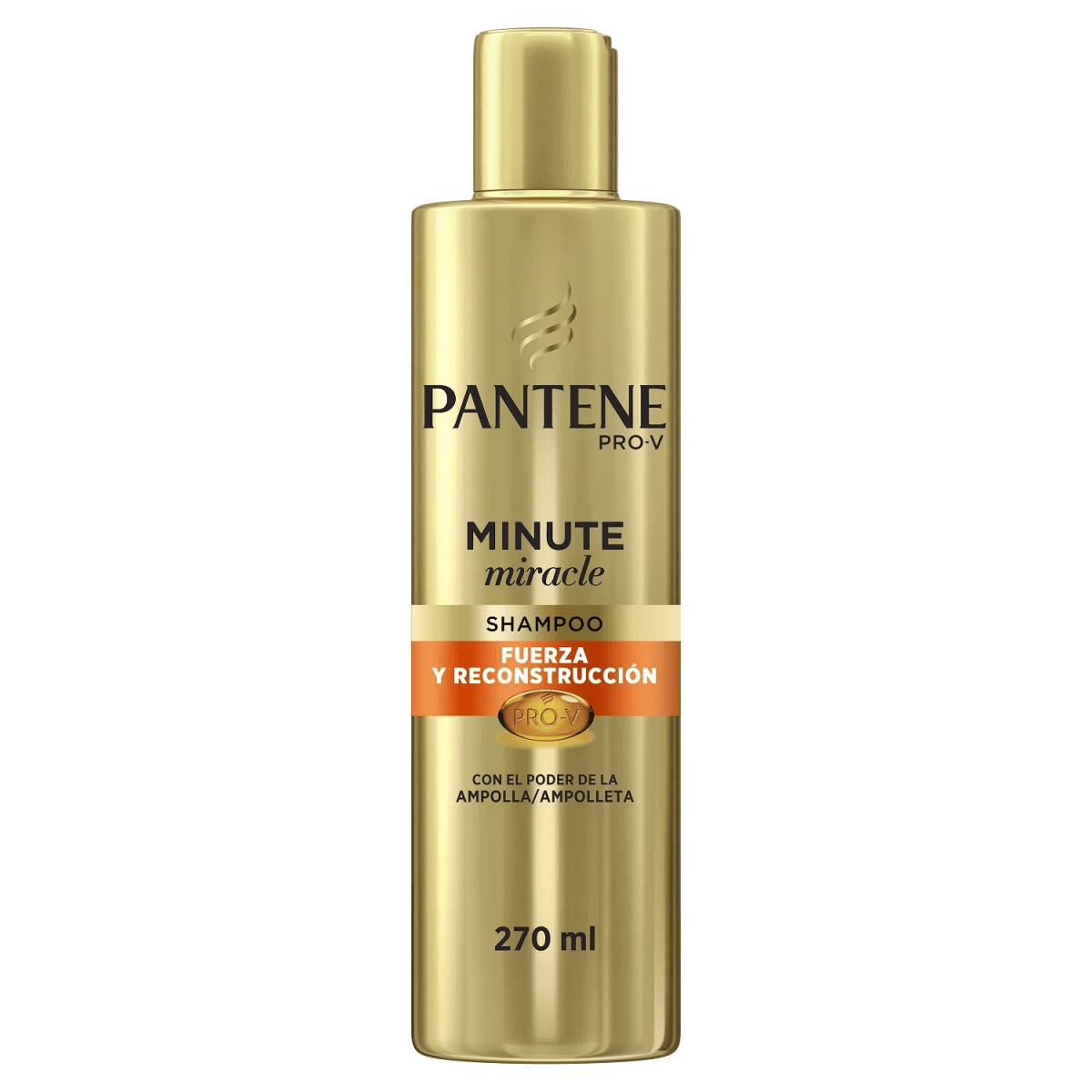 Shampoo Fuerza y Reconstrucción Minute Miracle reforzado con el poder de la ampolla, ayuda a reparar para un cabello fuerte y resistente contra el quiebre. El Shampoo Minute Miracle de Pantene es el único shampoo que refuerza la fórmula con pro-vitaminas con el poder de la ampolla, en una fórmula de oro patentada que brinda un sistema que va más allá de la limpieza y que deja el pelo nutrido, suave, 100% más fuerte y sin frizz desde la raíz