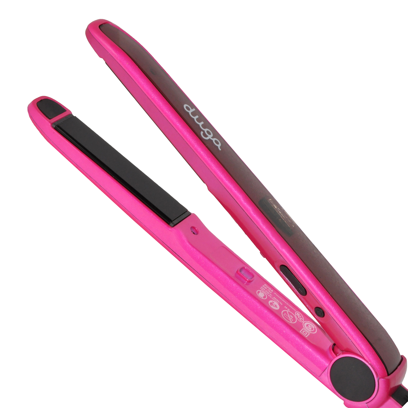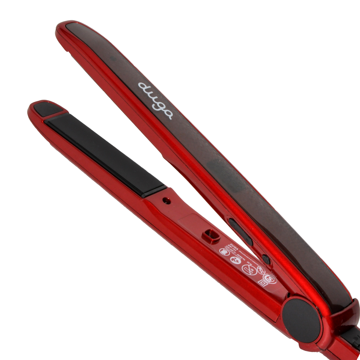 Duga Plancha Cerámica Tourmaline con 38 Watts de potencia. Temperatura de 150º/230ºC. Indicador LCD de temperatura. Cable 360º. Colores: negro, azul, rojo y rosa.