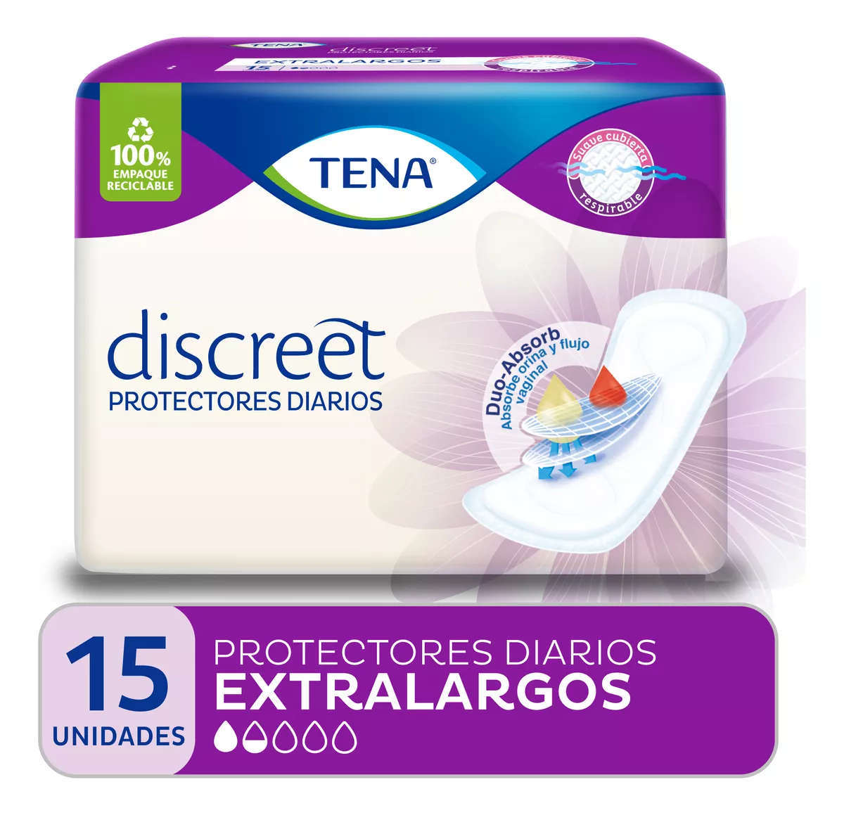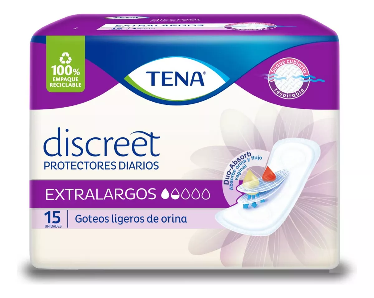 Tena Discreet Protector Diario Extra Largo Sin Alas x 15u