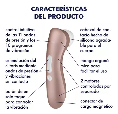 Satisfyer Pro 2+ te hará vibrar mediante una combinación de ondas de presión y vibración. Deja que nuestra tecnología altamente estimulante Air Pulse te lleve a un mundo completamente nuevo, donde las vibraciones te ofrecerán el máximo placer. El extremo del cabezal de aplicación suave vibra de forma excitante y ahora envuelve tu clítoris dos veces más intensamente. Controla los 10 niveles de vibración orgásmica mediante un botón independiente de los 11 programas de ondas de presión que se encuentran en el lugar habitual, en la parte central del dispositivo. De esta forma, podrás disfrutar de infinitas combinaciones de placer para tu bienestar sexual. Características: *2 motores de control separado *Modo de susurro *Estanco IPX7 *Resistente al agua *Fácil de limpiar *Cable de carga magnético por USB