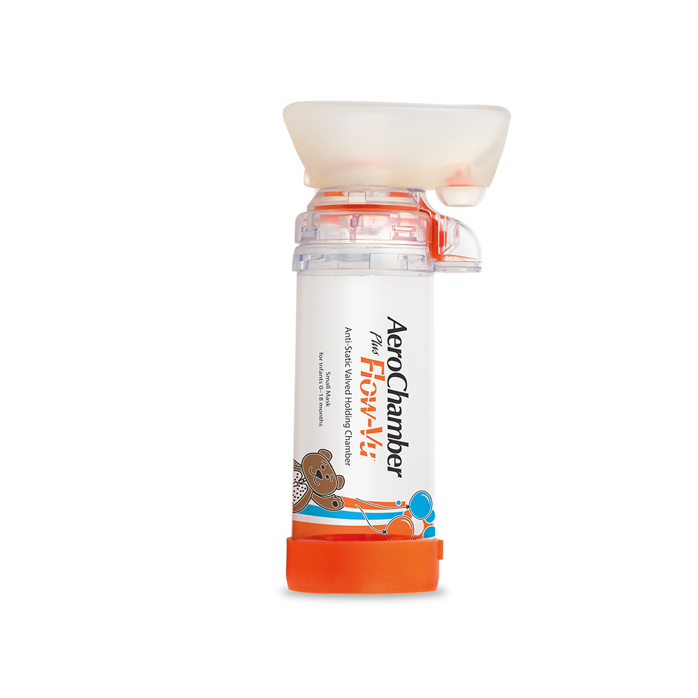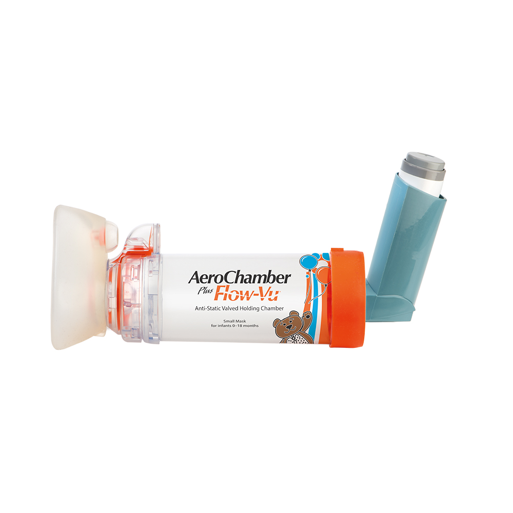 AEROCAMARA AEROCHAMBER PLUS FLOW-VU PEQUEÑA de 0 a 18 meses. Medidas de la Aerocamara: Largo total 15cm, Largo sin mascarilla 13cm, Ancho 4,5cm. Medidas de la mascarilla: Ancho 6cm, Alto 7.5cm. Los problemas respiratorios son muy comunes, como también es muy común que le recomienden usar una cámara de inhalación para asegurar que su medicación inhalada se administra correctamente.Aerochamber es una cámara pequeña, portátil, compatible con la mayoría de los inhaladores y que permite que desde los niños más pequeños hasta las personas de más edad puedan inhalar su medicación de forma correcta. Anti-Static VHC con máscara pequeña.
