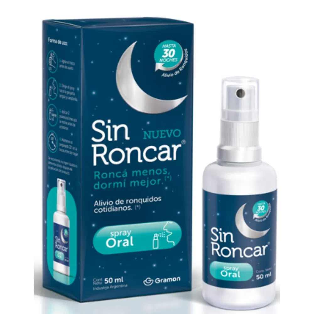SIN RONCAR SPRAY ORAL es un suplemento dietario a base de Vitaminas E y B6 en formato liquido sabor miel y limón que ayuda a disminuir las vibraciones que provocan los ronquidos cotidianos brindando un buen descanso. Su formulación libre de aceites vegetales contienen Goma Xántica que ayuda a lubricar el paladar blando, asi como componentes para mantener la garganta hidratada durante toda la noche. Los componentes humidificamentes y fluidificantes de la fórmula de SIN RONCAR SPRAY ORAL forman una película lubricante que facilita un deslizamiento más silencioso del aire durante la respiración nocturna.